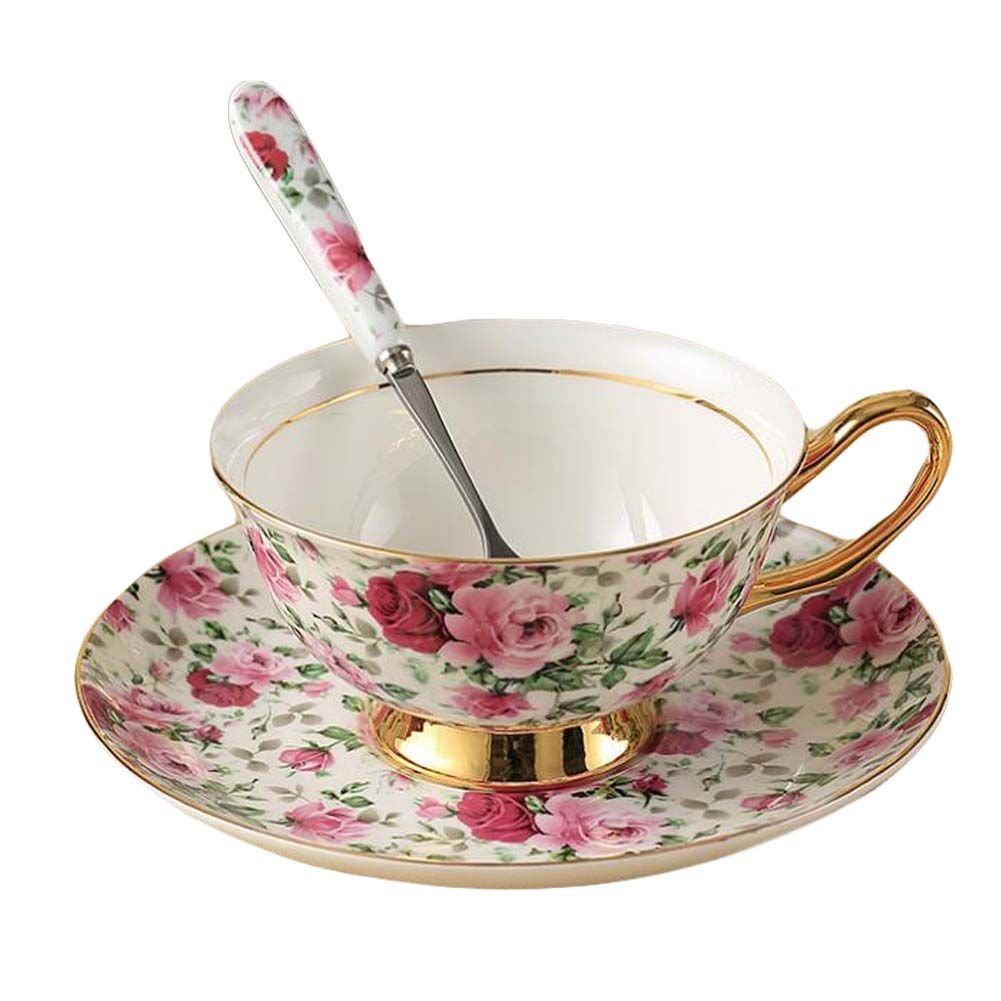 Cup Saucer Spoon Coffee Cup Set Porcelain Teacups and Saucers Coffee Mug 6.8OZ
