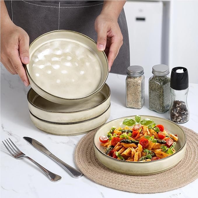 Home > Pasta Bowls, 8.25'' Large Bowl Sets of 4, Stoneware Round Shallow Dinner Plates for Meal, Ceramic Salad Serving Plate for Cereal, Soup