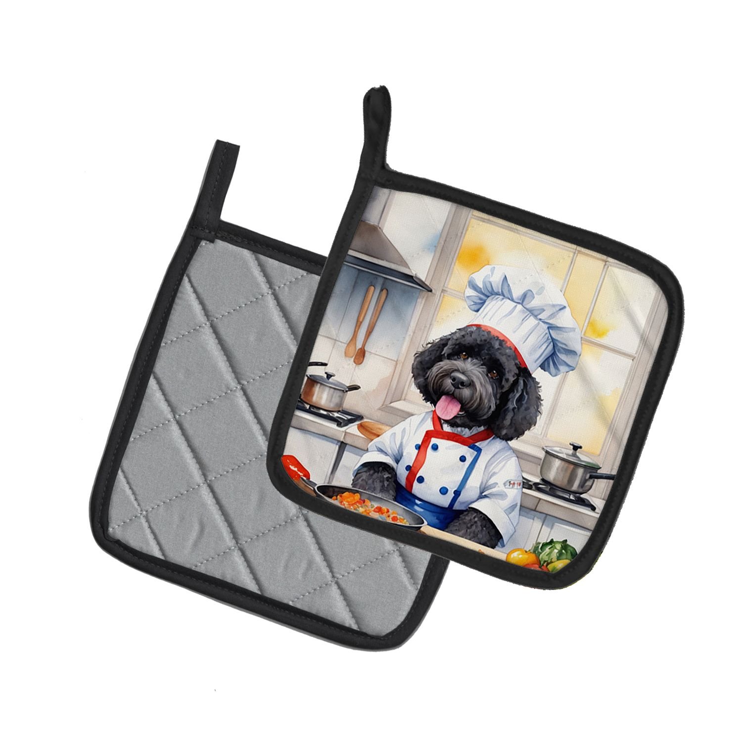 Home > Portuguese Water Dog The Chef Pair of Pot Holders Kitchen Heat Resistant Pot Holders Sets Oven Hot Pads for Cooking Baking BBQ, 7 1/2 x 7 1/2
